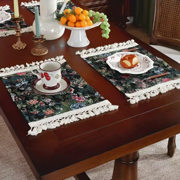 American Jacquard Botanical Flowers Rectangular Placemats – Eco-Friendly Dining Table Mats